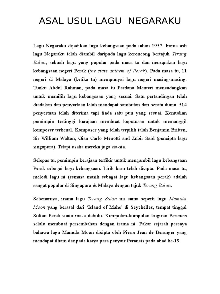 Lagu Kebangsaan Malaysia Sejarah Lagu Kebangsaan Malaysia